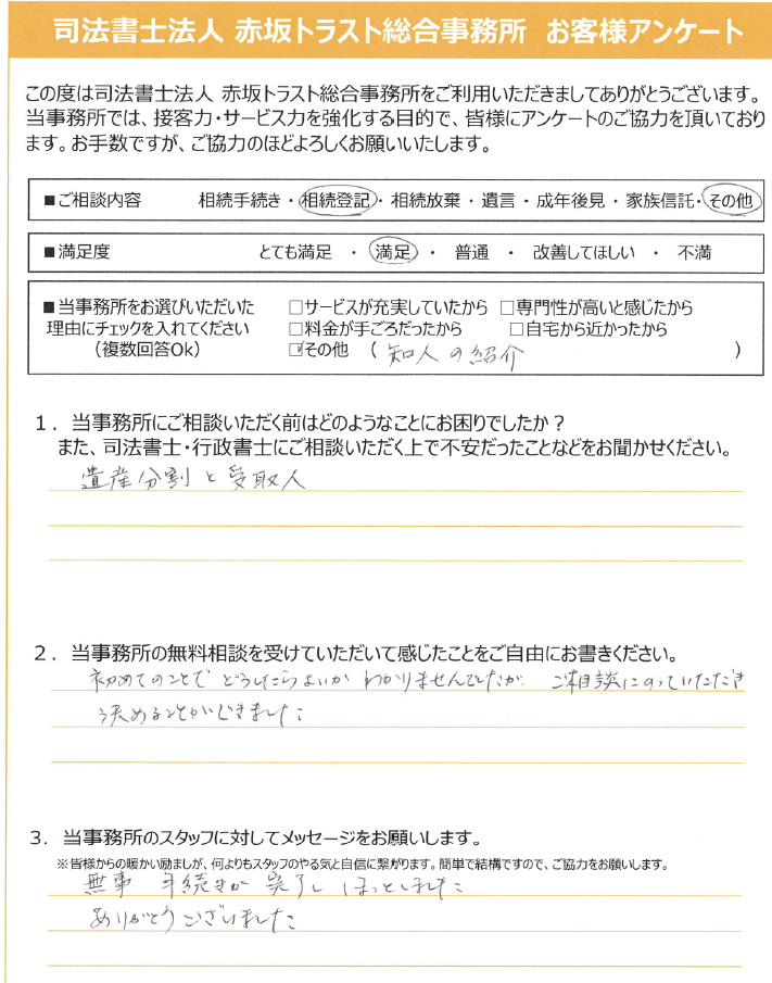 無事手続きが完了しほっとしました。